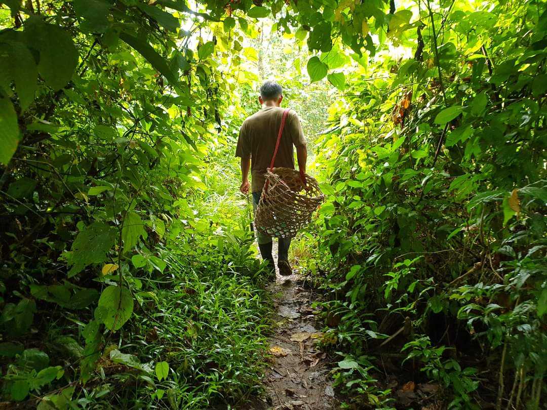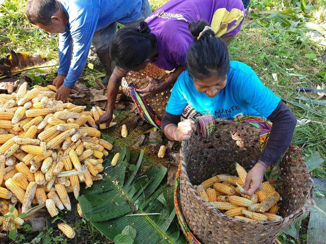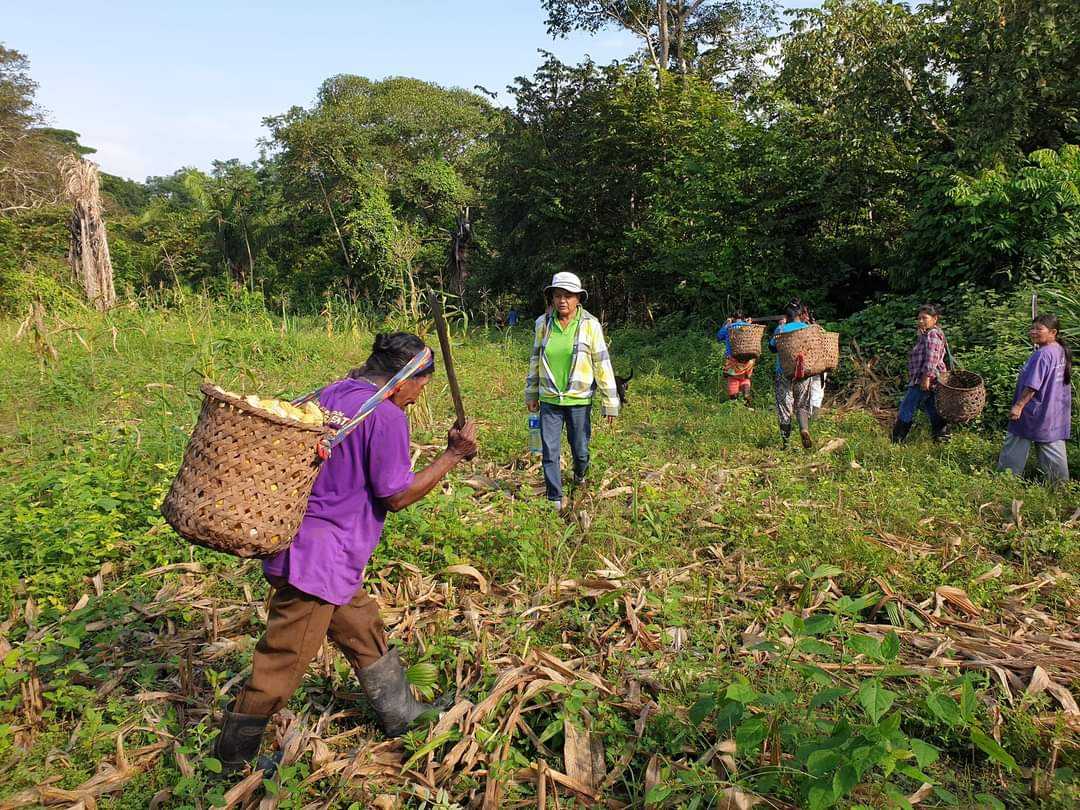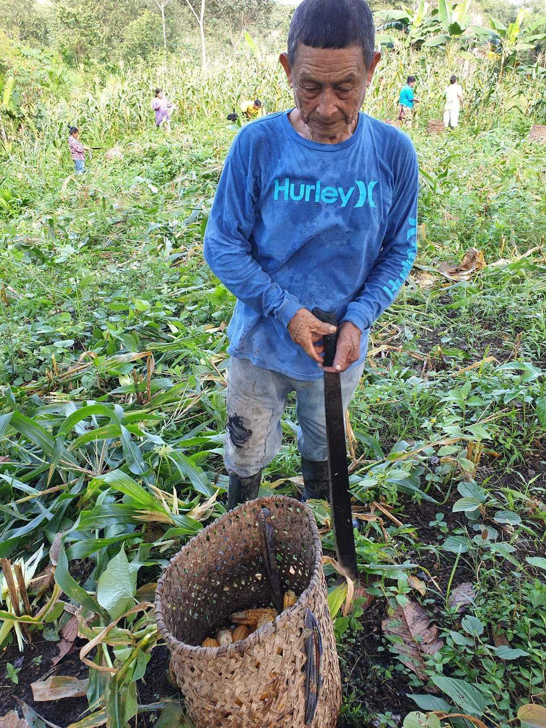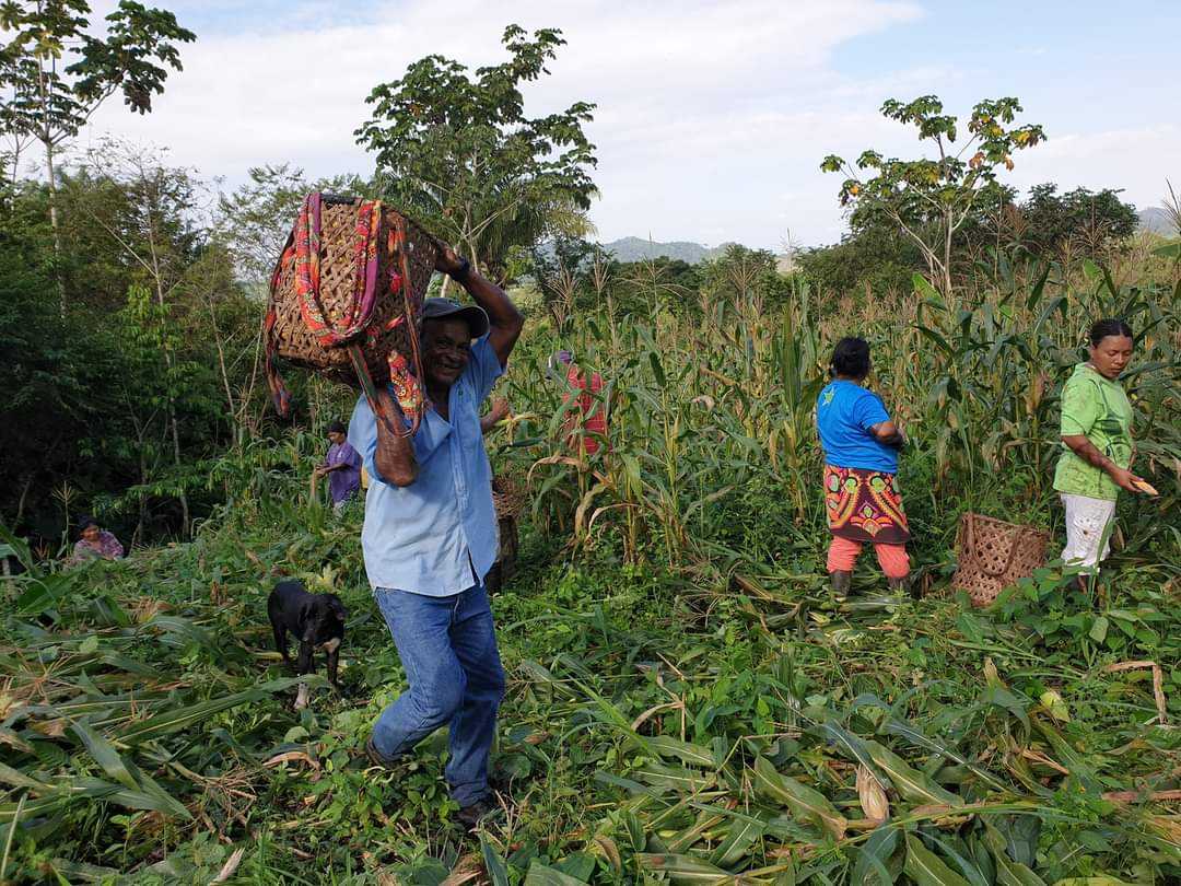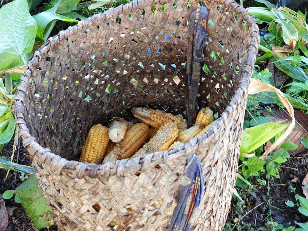 Indianie Wounaan żyją w społeczności, która wspólnie uprawia poletka wykarczowanej dżungli. Na jedno z nich wybrałam się z rana z moimi gospodarzami. Wreszcie przydały się zakupione w Colon eleganckie gumaczki. Energiczny spacer po różnie ukształtowanym terenie dał mi nieźle w kość. Minęliśmy kilka strumieni, inne poletka na których rosły platany, banany, kawa i avokado. Niestety nie jest to czas ich dojrzewania. Gotowa do zbioru była kukurydza, którą w kilķanaście osób szybko ścięto. Od razu obierali kolby z osłonek i pakowali w wiklinowe kosze, które tu noszone są na plecach. Cały ciężar opiera się na szerokim pasku na czole.