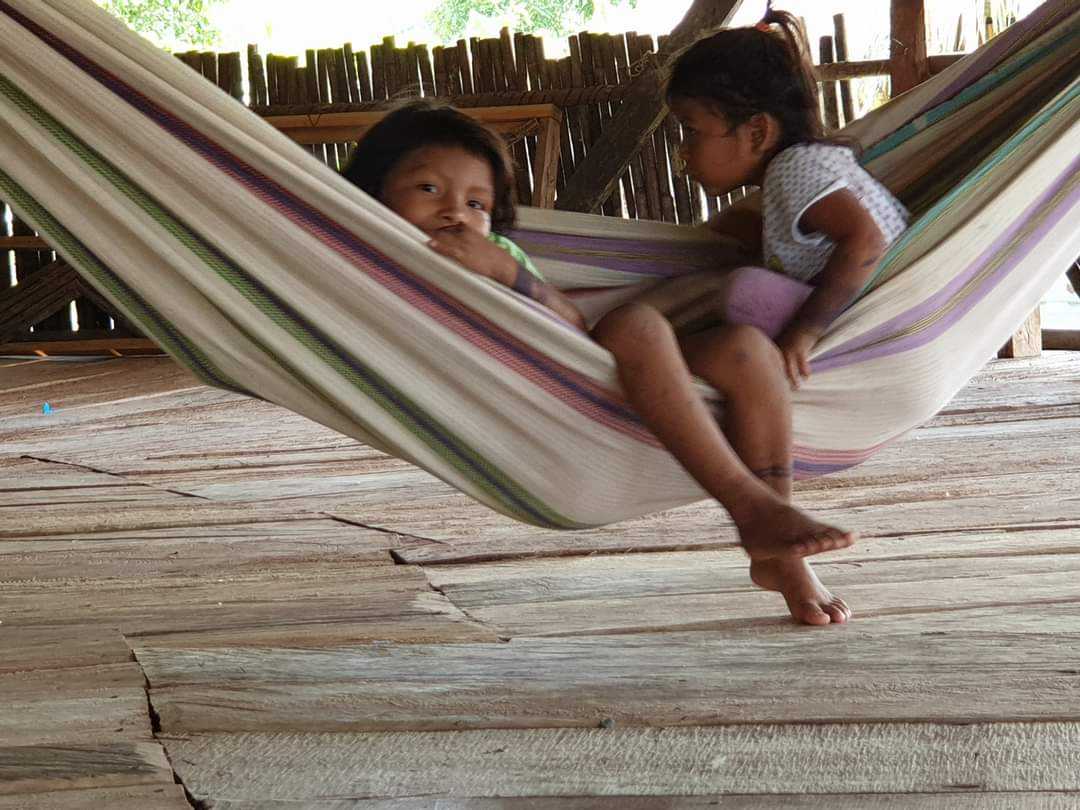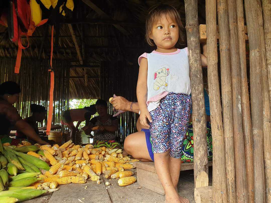 Dzieci tych pracujących przy kukurydzy kobiet zajmowały się sobą. Starsze opiekowały się młodszym, nikt się nie przejmował, że któreś spadnie, chaty sa na palach i nie wszędzie są ściany.