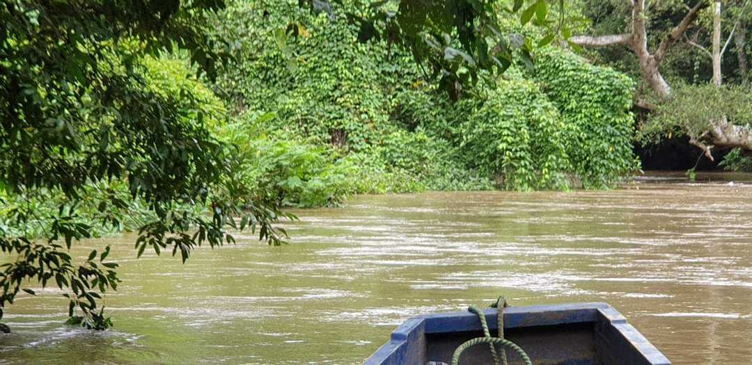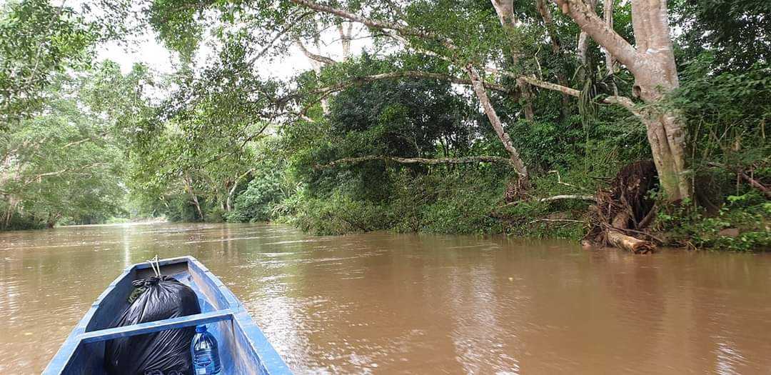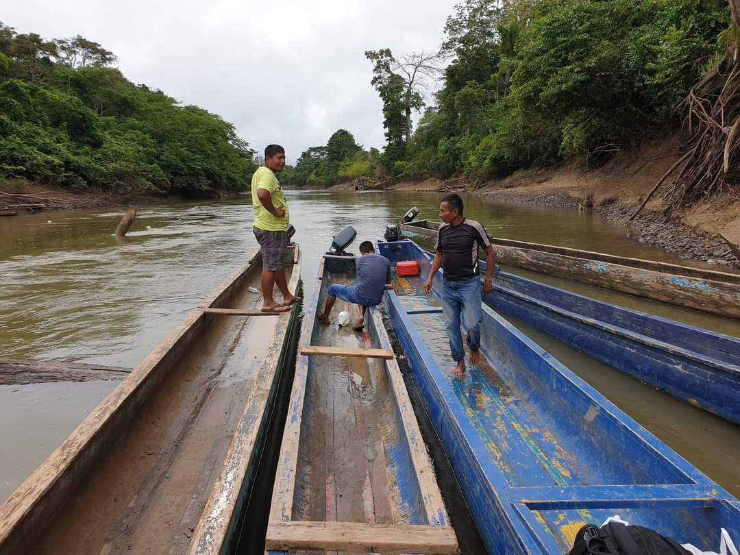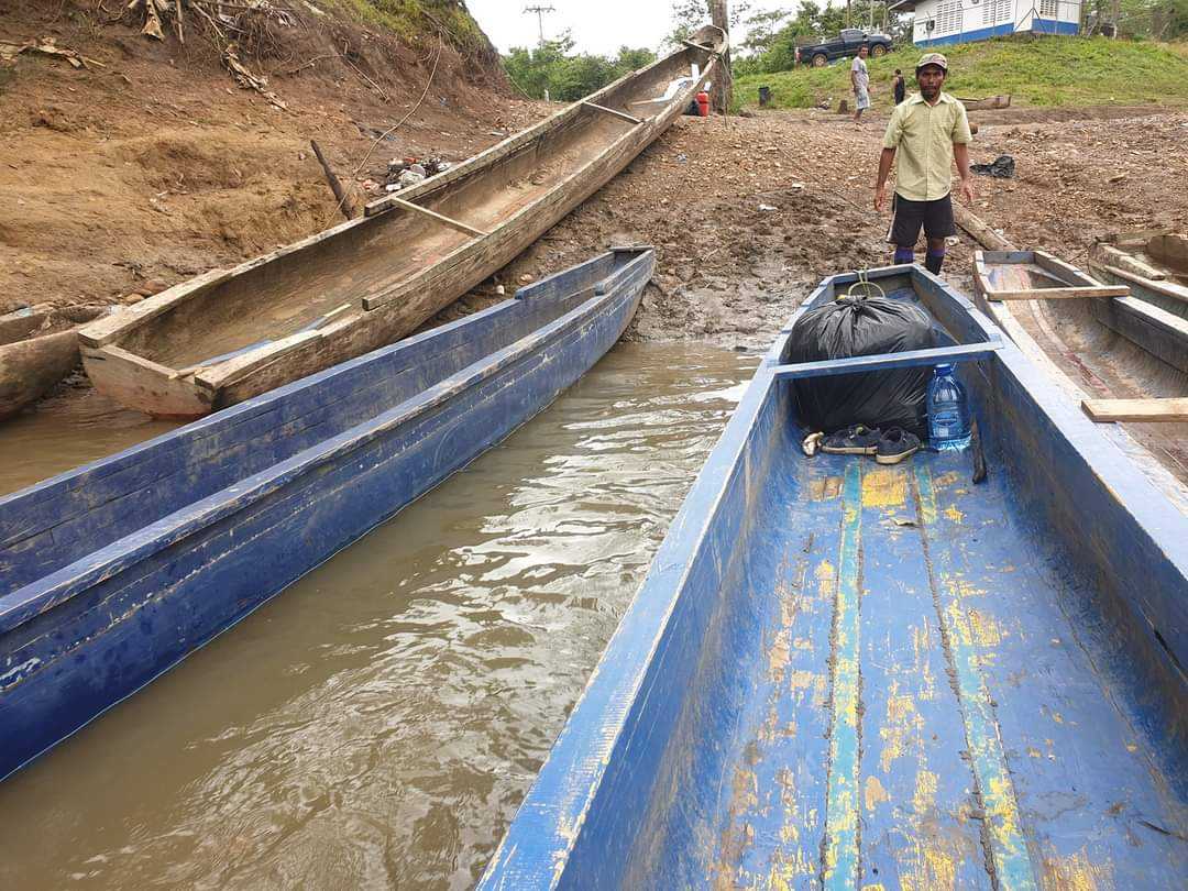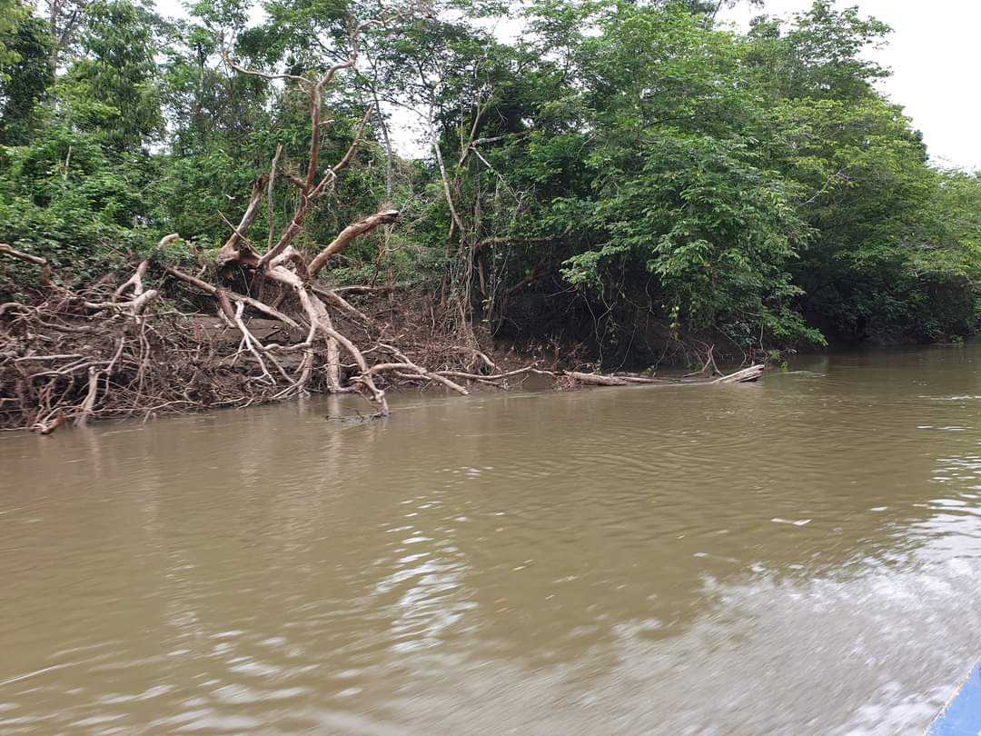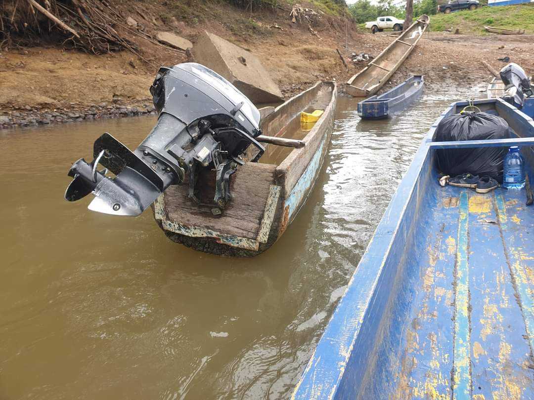 Pasażerką byłam tylko ja a kierującym Indianin z wioski obok Mach, z Synai. Podróż trwała ponad 4 godziny, najpierw szeroką rzeką Chucunaque a potem węższą Membrillo. Woda była mętna, koloru czerwono- brązowego. Kończąca się już pora deszczowa sprawiła, że brzegi osuwały się razem z drzewami i czerwoną ziemią.
