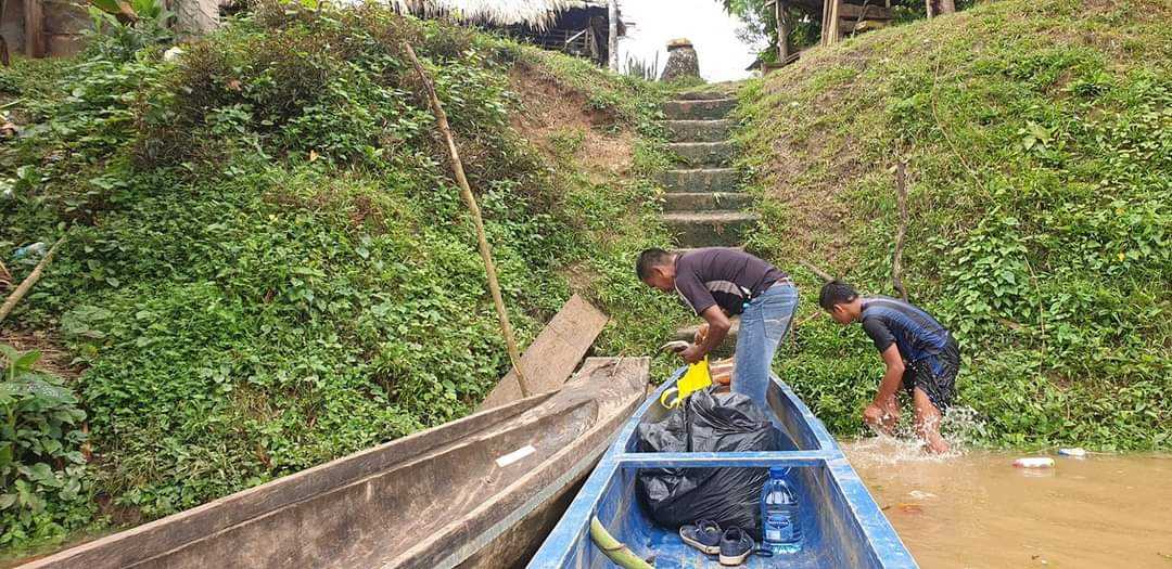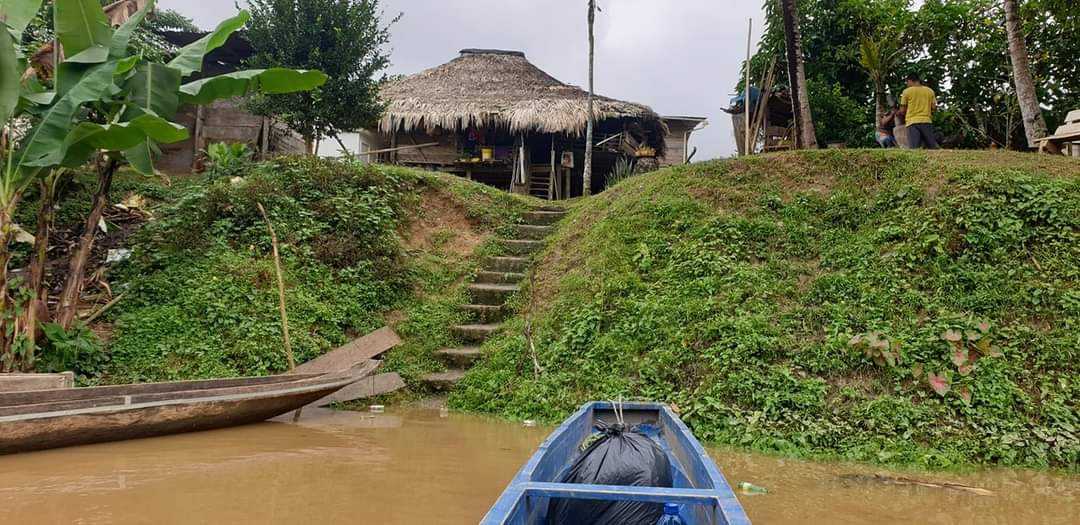 Do Mach Pobor, jak i do innych wiosek nad rzeką Membrillo, jest trudne dojście od wody w porze deszczowej. Miałam kalosze, które i tak nie ustrzegły przed wszechobecnym błotem. Mach leży na wysokim brzegu i podejście kosztowało dużo wysiłku. Spływająca woda, góra i błoto to jakaś masakra. Do chaty gospodarza, u którego miałam się zatrzymać, dopełzłam upaćkana błotem do pasa, spocona, z drżącymi od wysiłku nogami. Dobrze, że kapitan niósł plecak, nie dałabym rady z nim wejść.