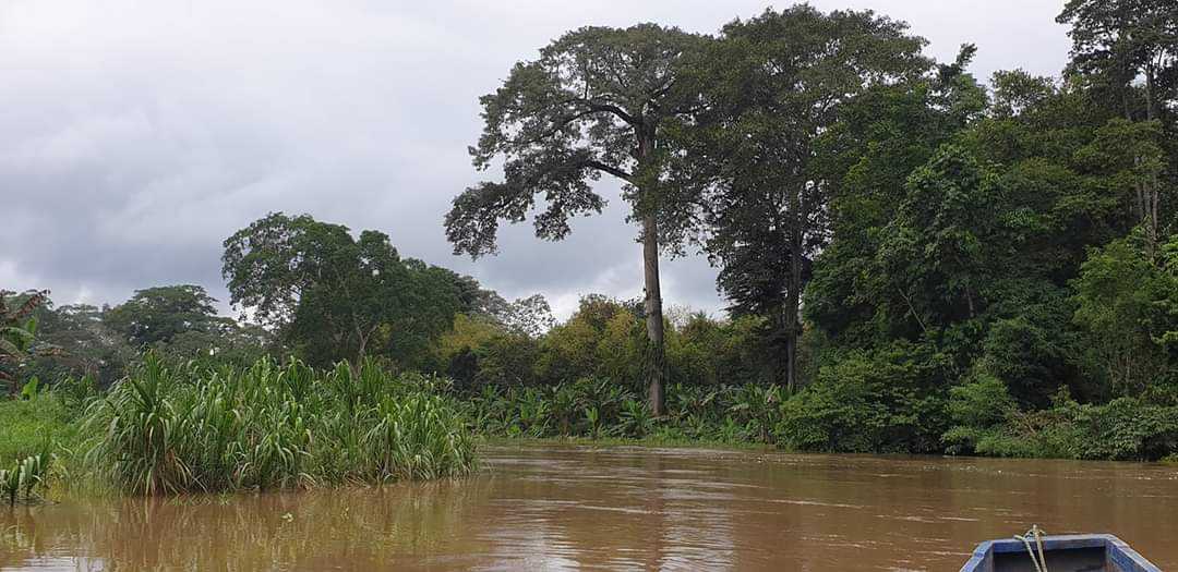 Roślinność nad wodą uderzała swoją soczystością, wszystko wilgotne i parujące. Kiedy słonko wychodziło zza chmur od razu robiło się bardzo gorąco. Płynęłam pirogą z rozdziawioną z zachwytu buzią, czułam się jak na wycieczce po ogrodzie botanicznym czy zoologicznym. Poczucie pełnej dzikości burzyły jedynie liczne mijane poletka zielonych bananów. Minęliśmy też kilka okrągłych chat pokrytych liśćmi palmowymi. Obie rzeki stanowią tu drogę komunikacyjną, którą spływają do cywilizacji upakowane po brzegi łódki z bananami. Często takie pirogi mijaliśmy, tak wypełnione towarem z upraw, aż dziw brał, że się nie utopiły.